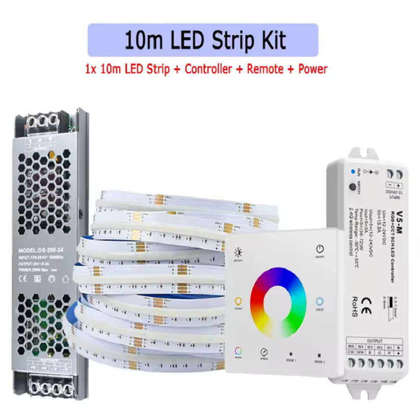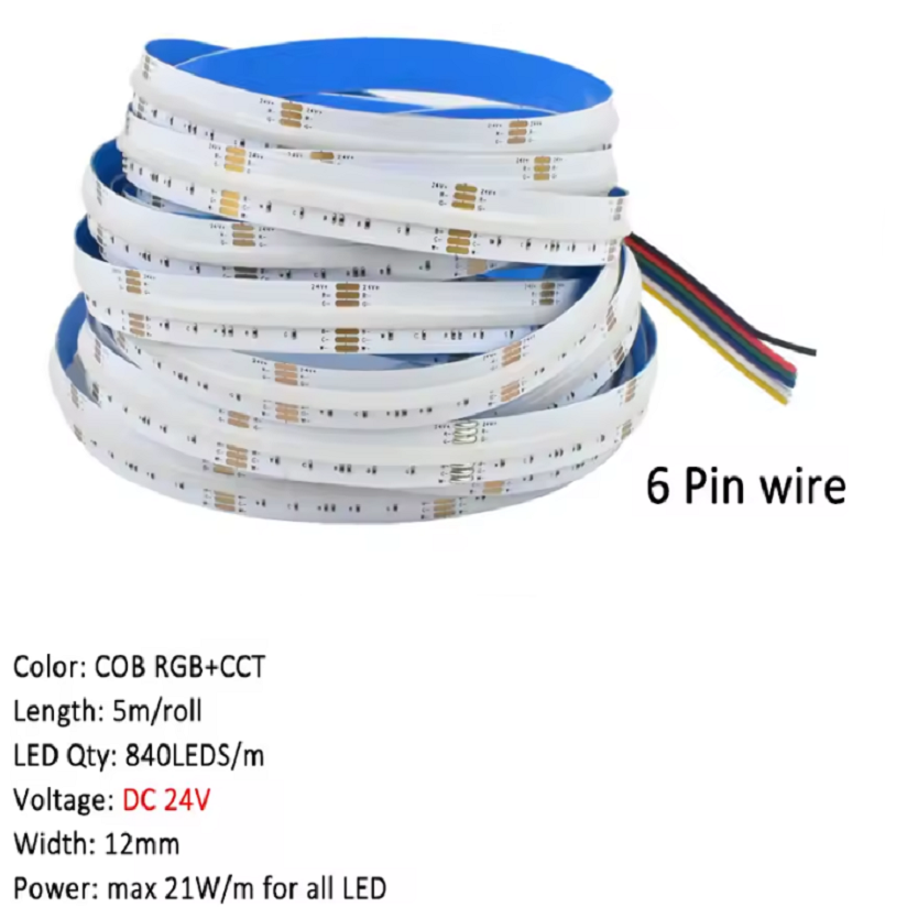 1× 10 m COB RGB+CCT LED strip (24V, 840 LEDs/m, 12 mm width)
