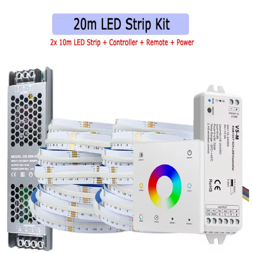 1× 20 m COB RGB+CCT LED strip (24V, 840 LEDs/m, 12 mm width)
